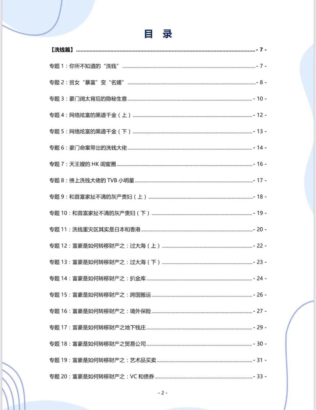 您的位置 首页 百家争鸣 【好书推荐】《伢大富讲故事之南洋见闻录》电子版PDF 作者: 顾子明博客 发布: 2024年10月9日 1,029阅读 0评论 顾子明博客 大家好,我是顾子明博客,由于微信改变了推送规则,请各位读者朋友关注后标星标,这样才会及时的收到消… 大家好,我是顾子明博客,由于微信改变了推送规则,请各位读者朋友关注后标星标,这样才会及时的收到消息推送,才不会错过资源下载哦。 大家周三快乐,今天小编收集整理的是:伢大富讲故事之南洋见闻录 伢大富讲故事之南洋见闻录(洗钱、转移资产….),关于海外富豪们的更多故事和八卦! 备注:这篇文章可以拓展洗钱,转移资产方面的视野,文章比较敏感,只上传以上目录。 隐藏内容需要支付:¥25 立即购买 查看隐藏内容需要支付: ¥25 微信支付 立即支付 请使用 微信支付 扫码支付 本文来自网络,不代表顾子明博客立场,转载请注明出处:https://www.guziming.cc/3739.html 标签:武侠评论 顾子明 顾子明 顾子明2019